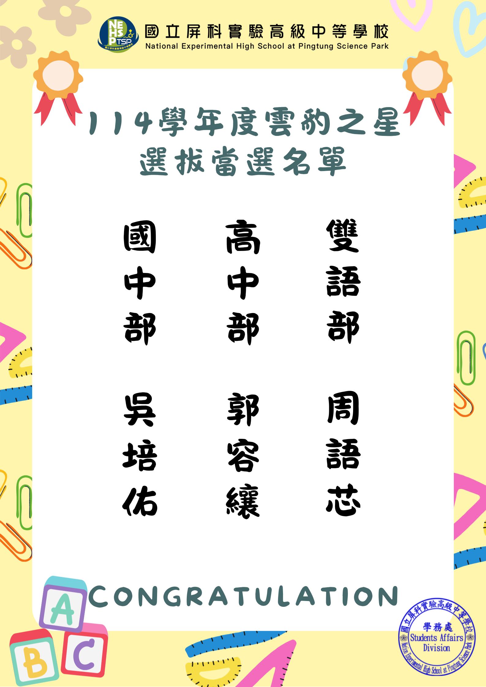 恭喜以上當選同學,其實不管有沒有當選,各班推出來的模範生都是同學們值得學習的楷模!