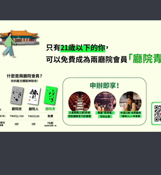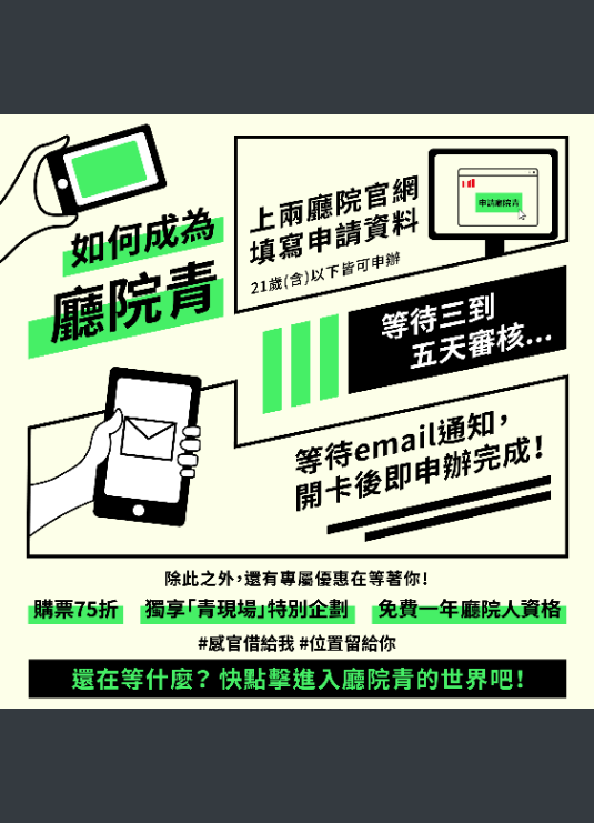國家兩廳院推出「廳院青」會員制度,開放免費申請中!