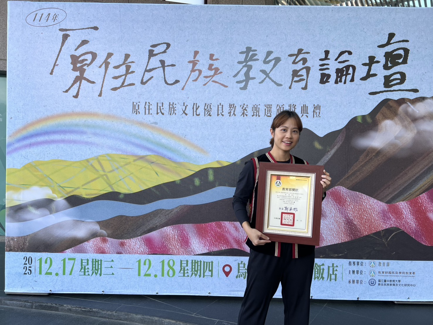 恭喜本校林佳宜老師參加「114年度原住民族文化優良教案甄選」以「Pulima 部落巧手,我很繪」教案 榮獲高中階段最高肯定 特優。