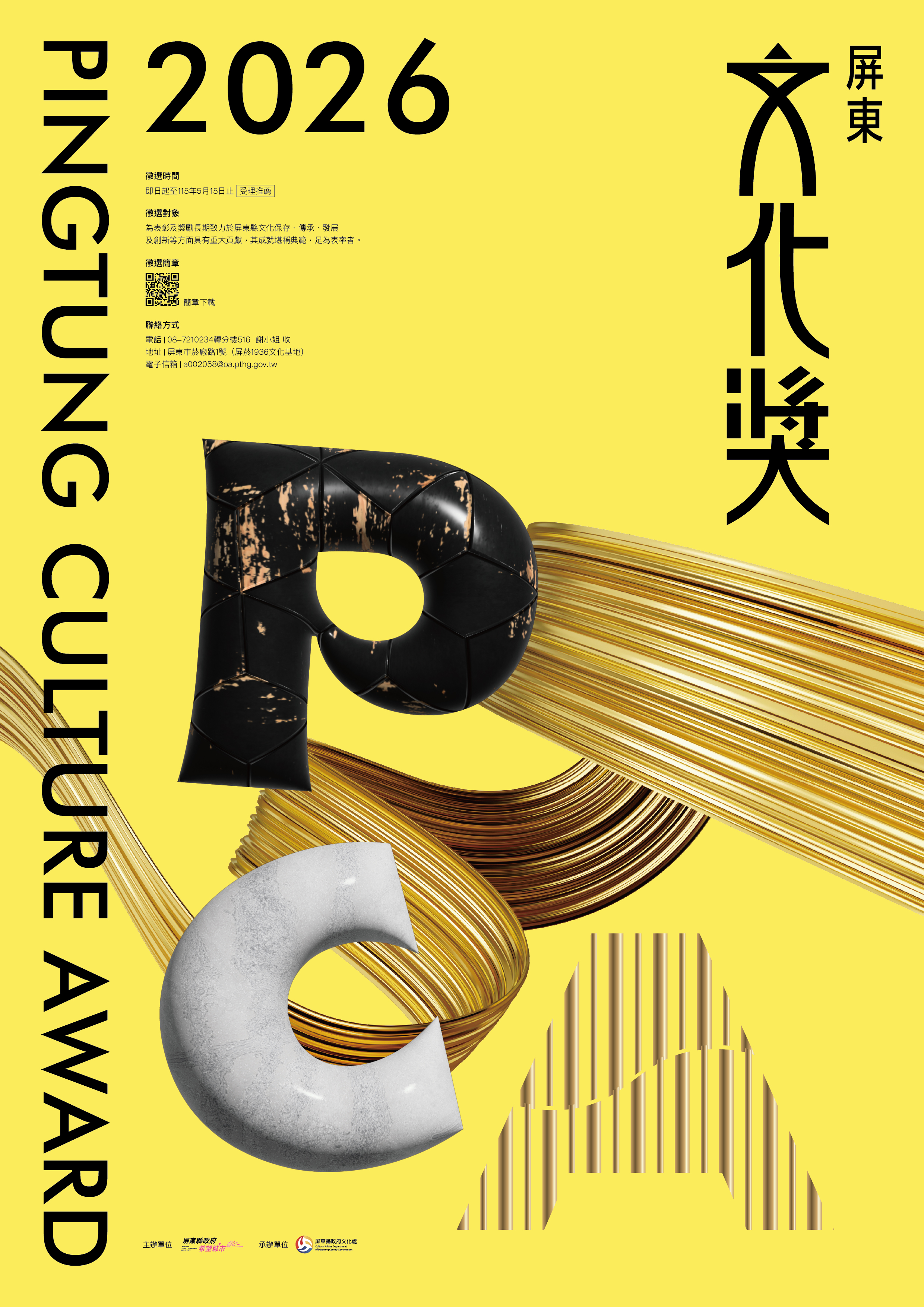 二、「2026屏東文化獎」初審推薦期間自即日起至2026年5月15日(星期五)截止,受獎人提名範圍包含各項藝文領域,且不限國籍,凡對屏東縣文化有特殊貢獻或傑出成就之個人或團體,均可接受提名。得獎者每屆以3名為原則,獎金新台幣30萬元整(獎金包含所得稅)。