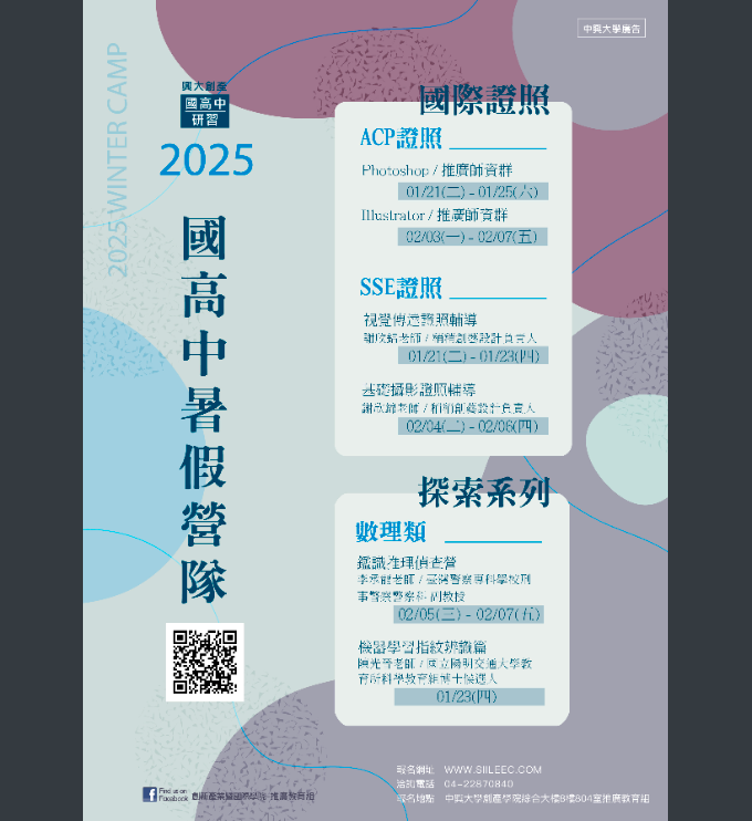 國立中興大學將於115年1月21日起舉辦旨揭營隊課程,各式營隊課程如下說明: