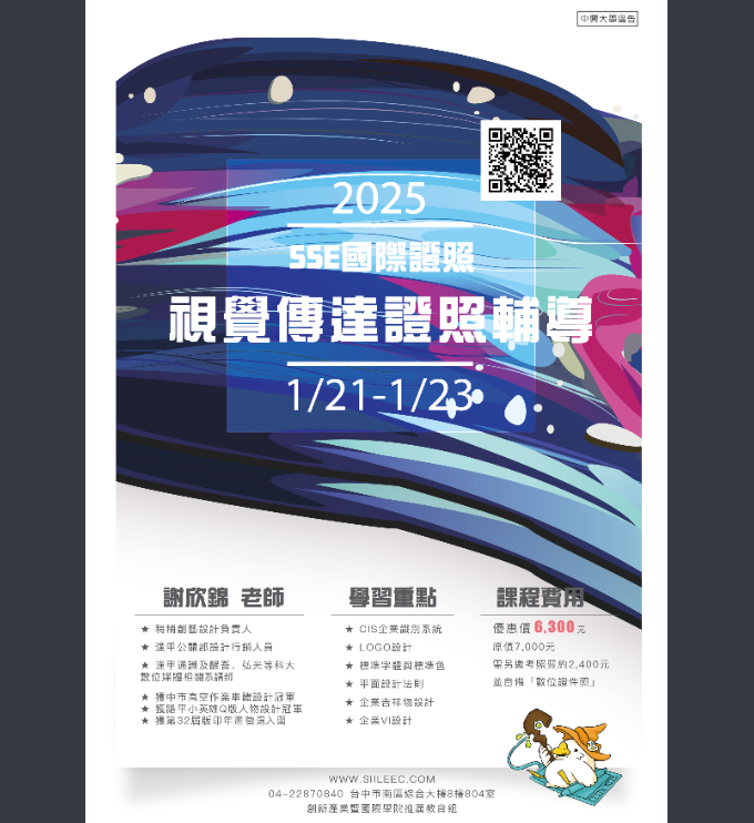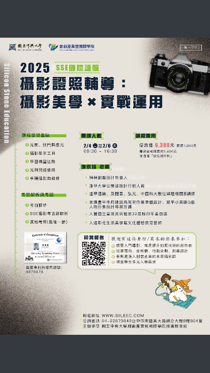 (二)對想增進視覺傳達、攝影技能養成,提供《視覺傳達、基礎攝影國際SSE證照輔導》。