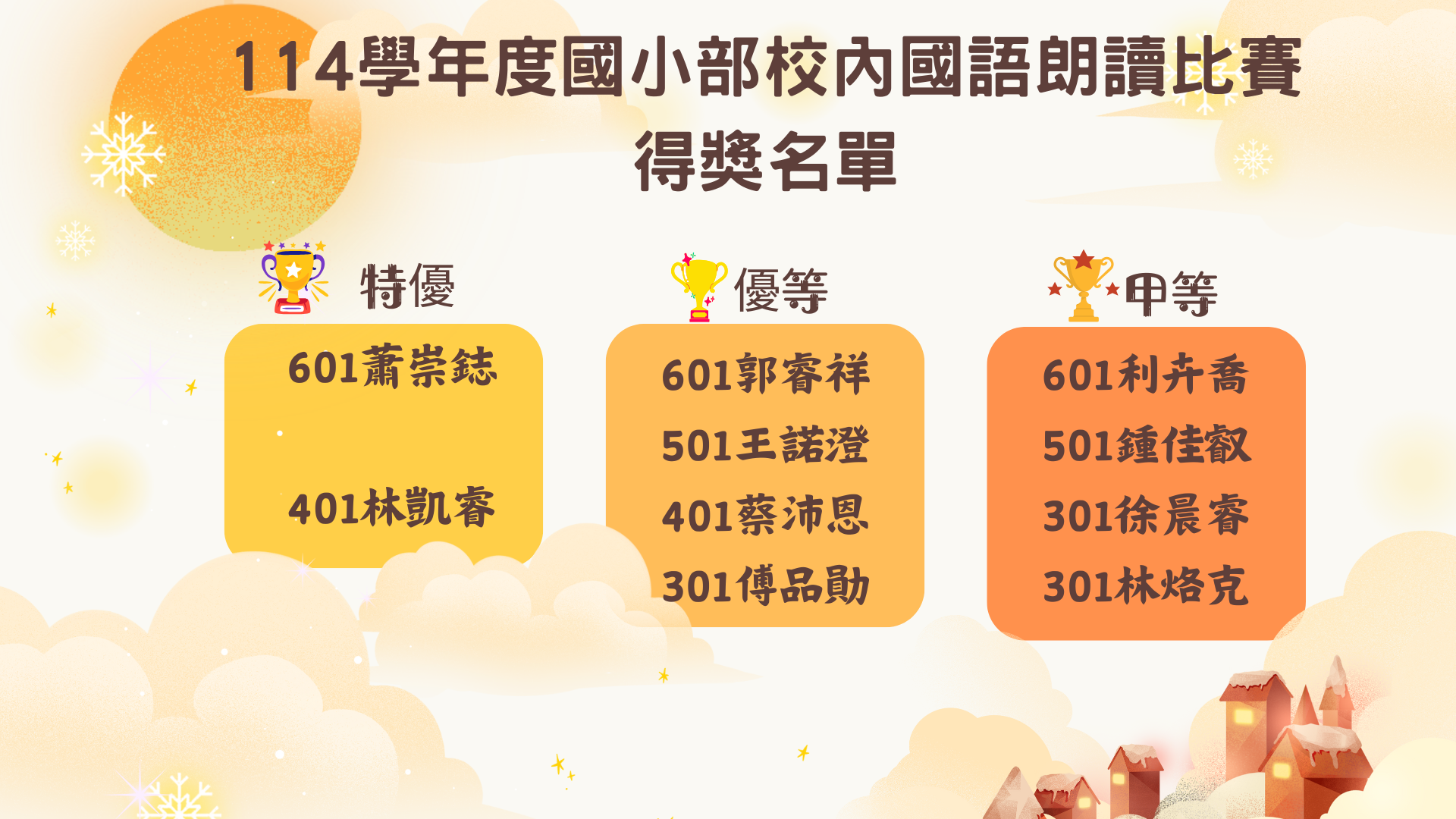 恭喜以下得獎同學~