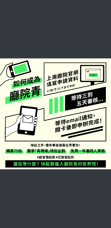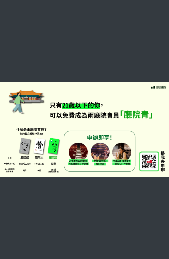 國家表演藝術中心國家兩廳院「國家兩廳院青年會員—廳院青」免費申辦資訊
